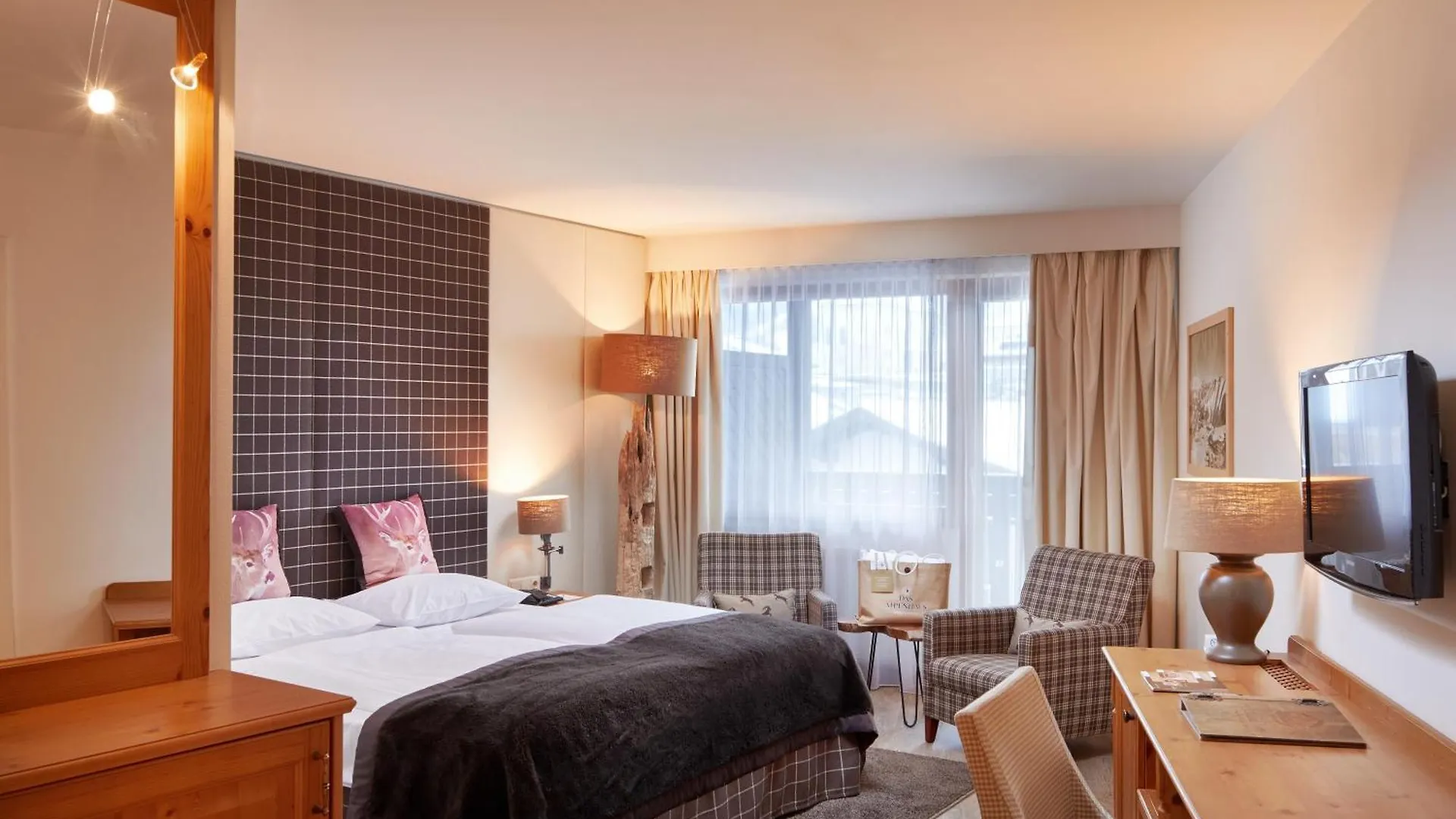 Værelserne har udsigt over Alperne og tilbyder en privat værdiboks, røgdetektorer og elektronisk nøglekort. Dejlige røre for at forbedre dit ophold inkluderer separat toilet og en bruser.